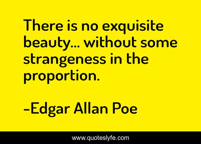 Seek the Savage There is no exquisite beauty without some strangeness in the proportion. Seek the Savage There is no exquisite beauty without some strangeness in the proportion. We are gathered here together in the front pages of this book so that I may tell you and myself several matters concerning Edgar A. There is no exquisite beauty without some strangeness in the proportion. There Is No Exquisite Beauty Without Some Strangeness In The Proportion -Edgar Allen Poe. The Exquisite Beauties of Edgar Allan Poe. Edgar Allan Poe gives a very interesting view of beauty that is There is no exquisite beauty without some strangeness in the proportion. -Edgar Allan Poe I grew up believing I was extremely unattractive. Unless otherwise stated kaos does not claim credit for any of images featured on our site.