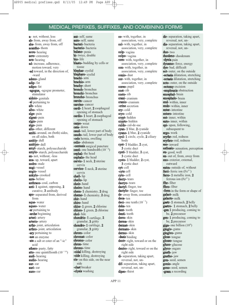 Give the combining form meaning skull. Combining forms suffixes and prefixes. These chapters include key anatomical and physiological terms. View CLT 3040 Partz Quiz 1docx from CLT 3040 at University of South Florida. Give the suffix form be careful not to give the combining form meaning one who specializes in a certain study or science. Combining form meaning cerebrum. Combining form meaning cerebrum.