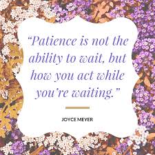 Rather it is timing it waits on the right time to act for the right principles and in the right way Fulton J. Patience is the calm acceptance that things can happen in a different order than the one you have in mind David G. A collection of Joyce Meyer Quotes about anger forgiveness God Jesus love trust hope peace Bible and much more. Allen Patience is bitter but its fruit is sweet Aristotle Patience is not simply the ability to wait its how we behave while were waiting Joyce Meyer Rivers know this. Her positivity and inspiring words are contagious and have helped many people get through tough times and brighten up their day. Patience is a fruit of the spirit that grows only under trial Joyce Meyer. Ability 79 clever 268 patience 85 waiting 60.