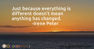 If you cant change it change your attitude. JUST BECAUSE THINGS COULDVE BEEN DIFFERENT IT DOESNT MEAN THEYD BE BETTER. Hopefully you have read Part 1 of my blog where I explored a potential interpretation of the inspirational quote by Irene Peter Just because everything is different doesnt mean anything has changed.